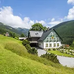 Beligende i Špindlerŭv Mlýn har Pension Slunecnice & Restaurace Farma en værdiboks og en restaurant. Krkonose Nationalpark ligger 10 minutters kørsel fra gæstehus og 15 minutters kørsel fra Špindlerův Mlýn Skisportssted.
