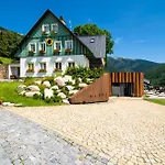Situado a apenas 1.5 km do Teleférico Horal, o Pension Slunecnice & Panorama Restaurant Farma Špindlerŭv Mlýn de 3 estrelas fornece Wi-Fi nas áreas públicas e o parque de estacionamento no local. Localizado em montanhas e vale, este hotel fica à aproximadamente 10 minutos a pé de Bobsleight Špindlerův Mlýn.